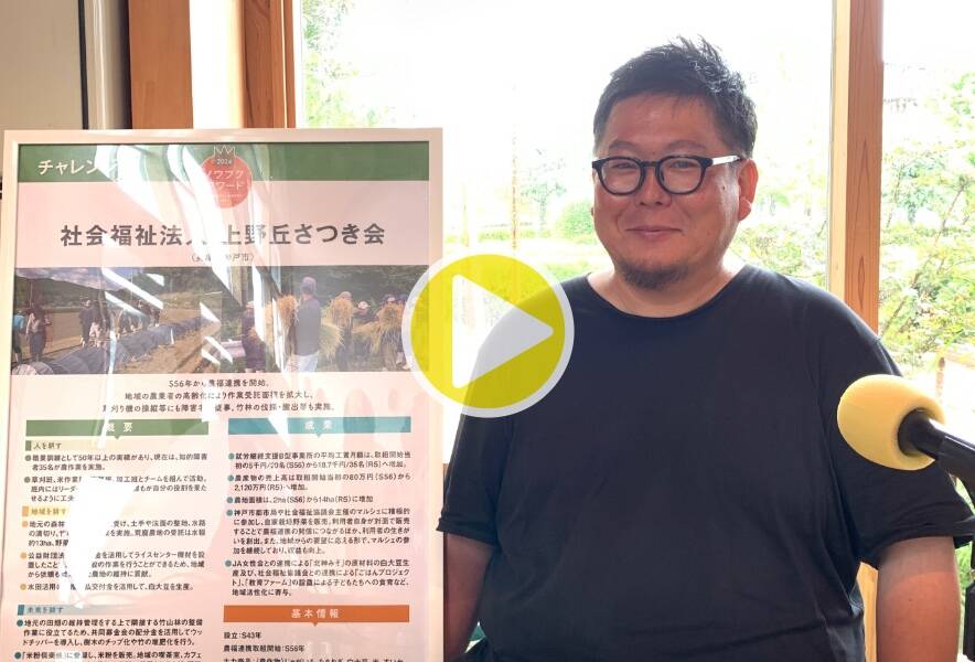 今月は、神戸市北区淡河町に事業所と農地がある社会福祉法人上野丘さつき会(https://www.uenooka.jp/)から樫原茂憲さんをお迎えして、これまで地域密着で進めてきた農業と福祉連携の取り組み、生産されている作物、利用者さんの様子やこれから旬を迎える野菜などをお話しいただきました。
