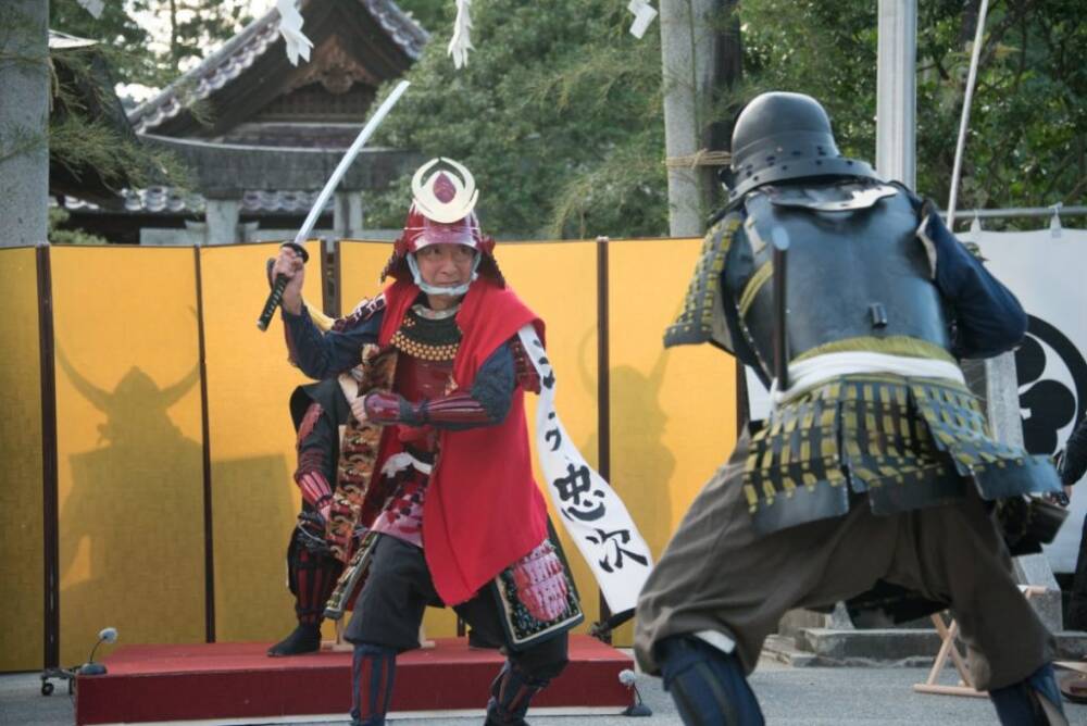 忠次公の朱塗りの甲冑を身に着け、馬に乗って練り歩きます。