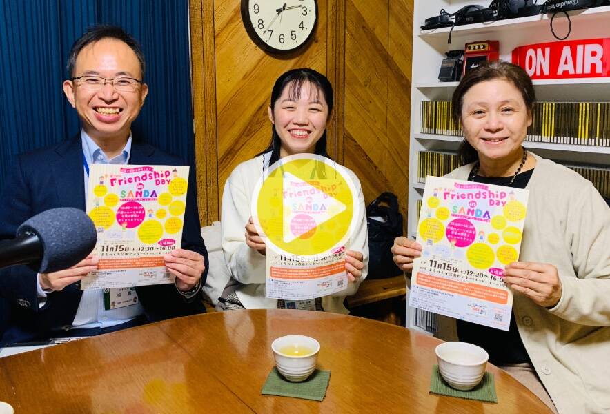 今回は、11月15日(土)に開催される「第28回フレンドシップ・デイ・イン・サンダ」について、三田市人権共生推進課から河島昌樹さん、畠中郁香さん、実行員会から委員長の寿賀素子さんをお迎えして、イベントの趣旨や開催の経緯、例年の様子と今年の開催内容、おすすめの企画などをお聞きしました。