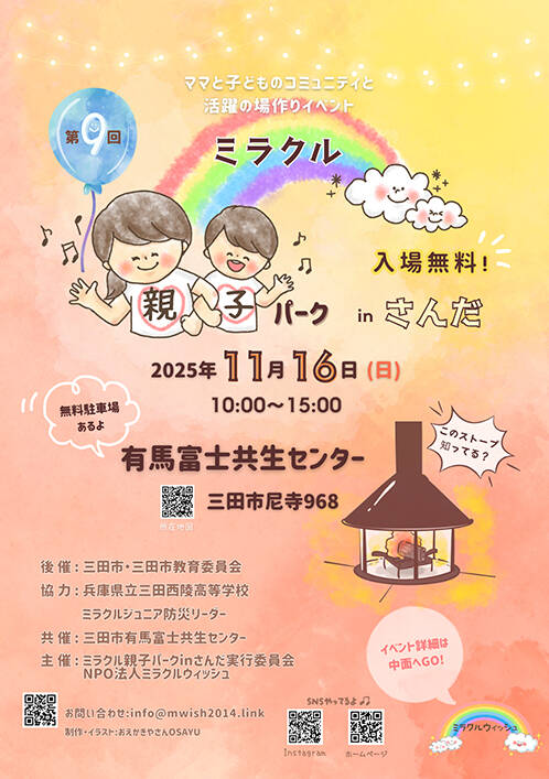 【ミラクルウィッシュの夢を形にミラクルタイムズ】11月7日(金)配信 ミラクル親子パーク in さんだを紹介します!