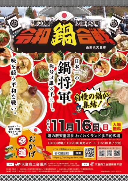 今回は山形県天童市で11月16日に行われる「第31回天童冬の陣 令和鍋合戦」を紹介しました。
