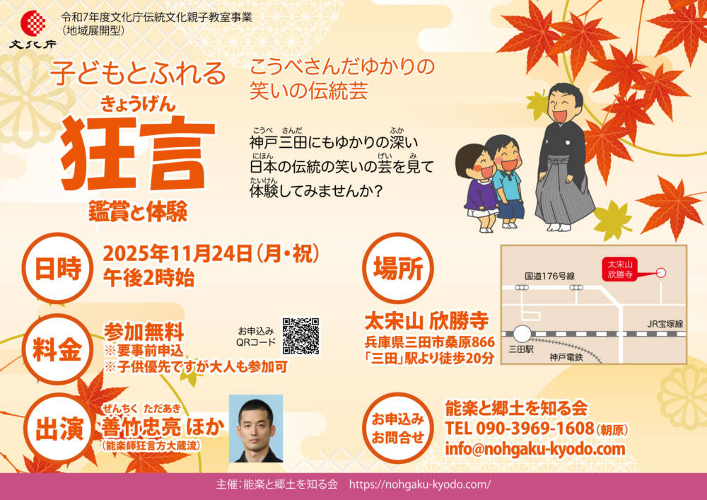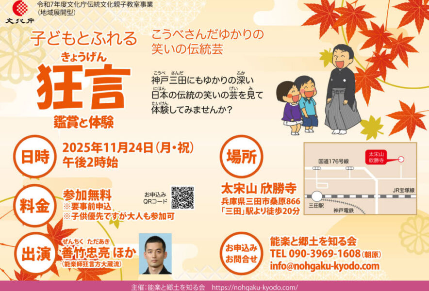 神戸三田にもゆかりの深い日本伝統の笑いの芸「狂言」の上演・体験・解説