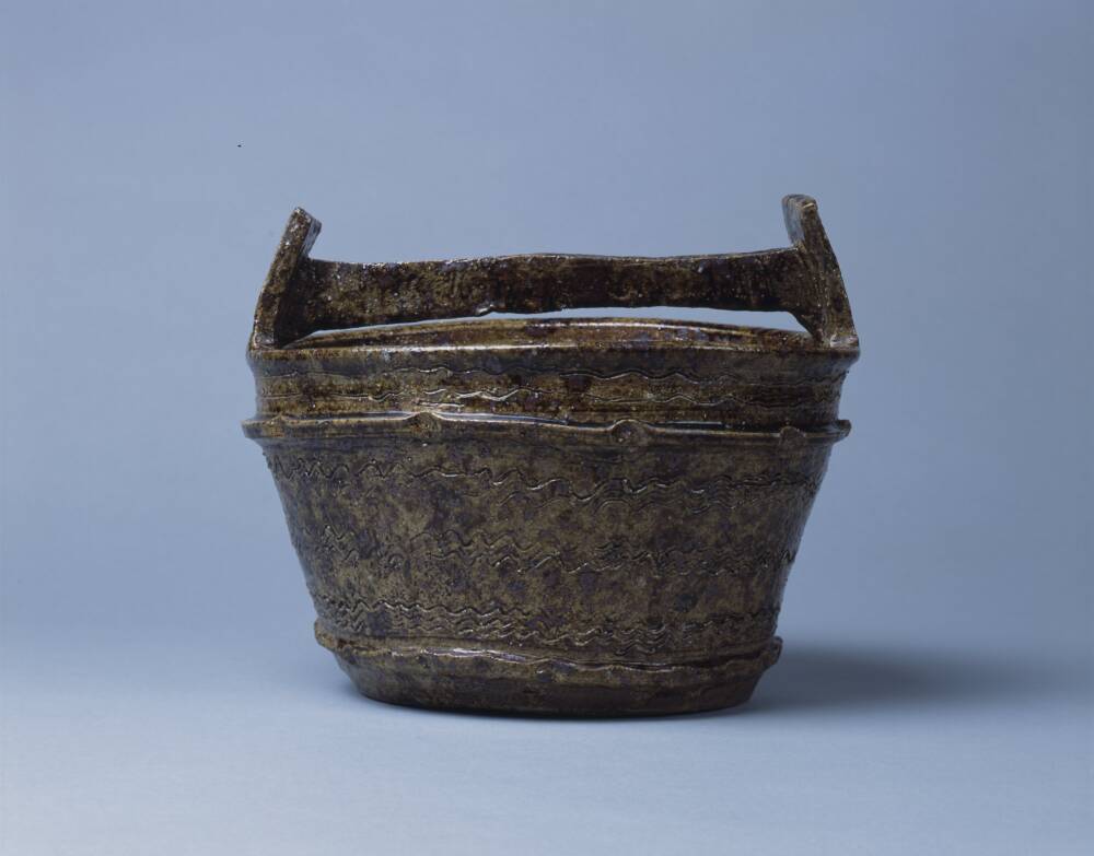 灰釉手桶形水指 銘「日本海」 江戸時代前期(17世紀)