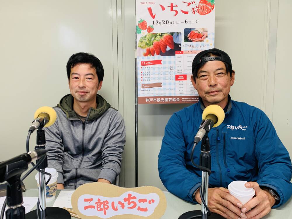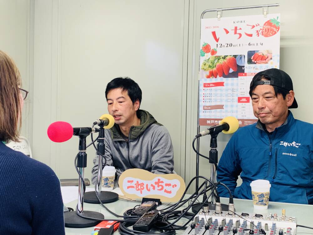 今月は二郎いちご青年部の皆さんにお越しいただいています。今回は、二郎いちご青年部顧問の山根康史さん(ヤマネコファーム)、坂本佳希さん(いちご松)に、二郎いちごの歴史と青年部の活動、お二人の農園で栽培されているイチゴの種類と特徴、生産する時のこだわりや気を使うこと、美味しい食べ方などお聞きしています。