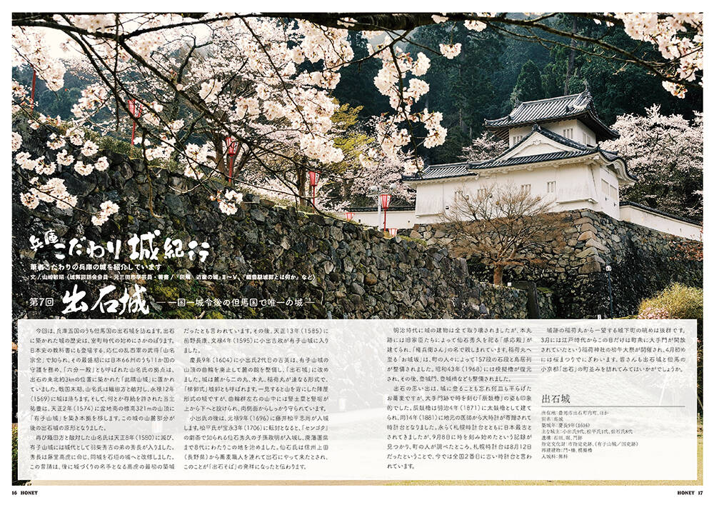 今日のカフェテラスは、ハニーFMのフリーペーパー『HONEY vol.77 春号』掲載の「兵庫こだわり城紀行」をお書きいただいた、城郭談話会会員の山崎敏昭さんをお迎えして、今回取り上げた一国一城令後の但馬国で唯一の城「出石城」についてお話しいただきました。