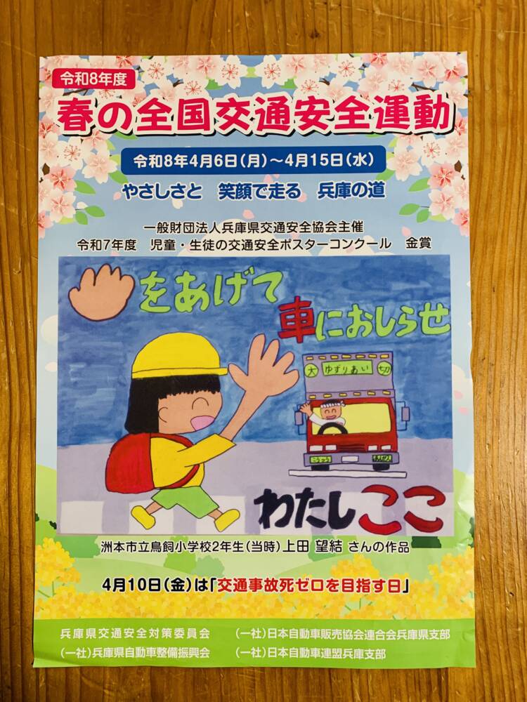 また4月6日(月)から「春の全国交通安全運動」が始まります。そして4月10日(金)は「交通事故死ゼロを目指す日」にもなっていますので、みなさん安全運転を心がけましょう。
