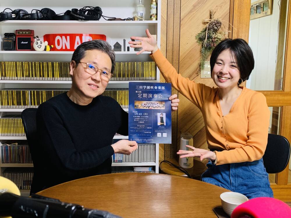 今月は、ゲストに三田学園吹奏楽部顧問の鷹田秀人さんをお迎えして、音楽との出会い、テナーサックスからクラリネットへ転向、三田学園吹奏楽部の顧問になって約30年、指導で大切にしていることや生徒に伝えたいこと、ちょこっとパーソナルなエピソード、そして5月4日(月)開催の「三田学園吹奏楽部 第54回定期演奏会」の聴きどころやプログラム内容などをご紹介いただいています。