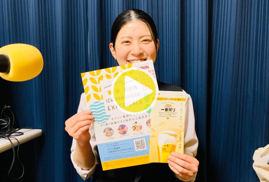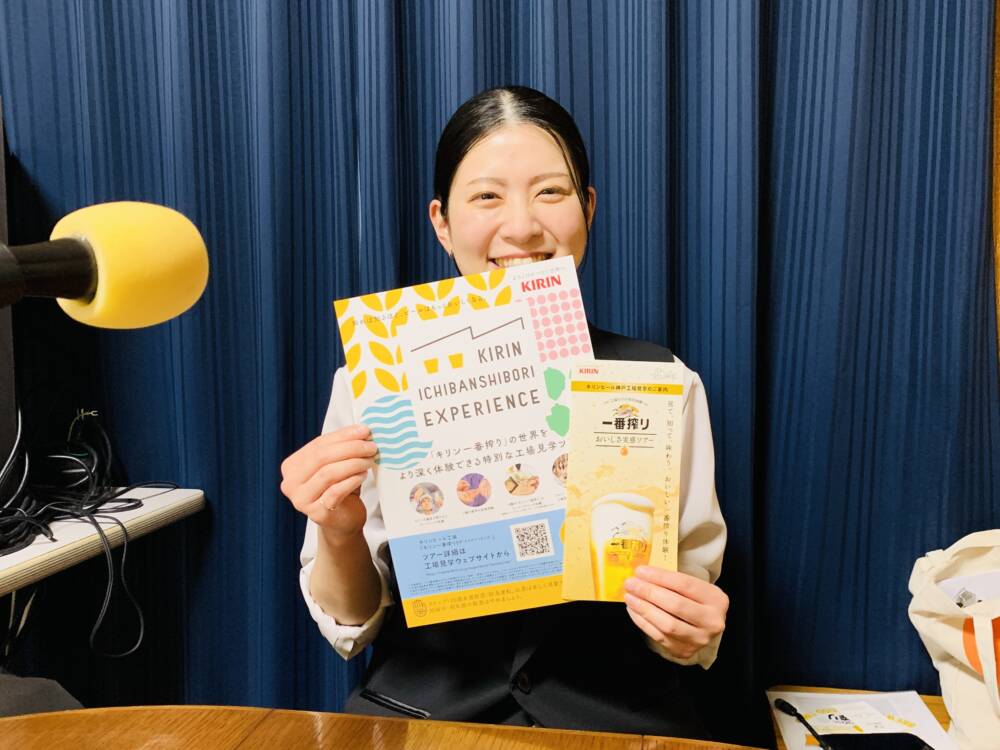 キリンビール神戸工場から見学ガイドの山本さんをお迎えして、5月9日(土)から始まるカスタマイズ型のプレミアム工場見学「キリン一番搾りエクスペリエンスツアー」についてお聞きしました。このツアーのポイントとして、一番搾りに関するエピソードから興味のあるものを選択できるカスタマイズ型ということと、醸造フィロソフィーの体感、こだわりの素材体験、神戸工場オリジナルコンテンツ、そして一番搾りブランド3種と神戸工場ならではを感じられるおつまみのフードペアリングが体験できるそうです。