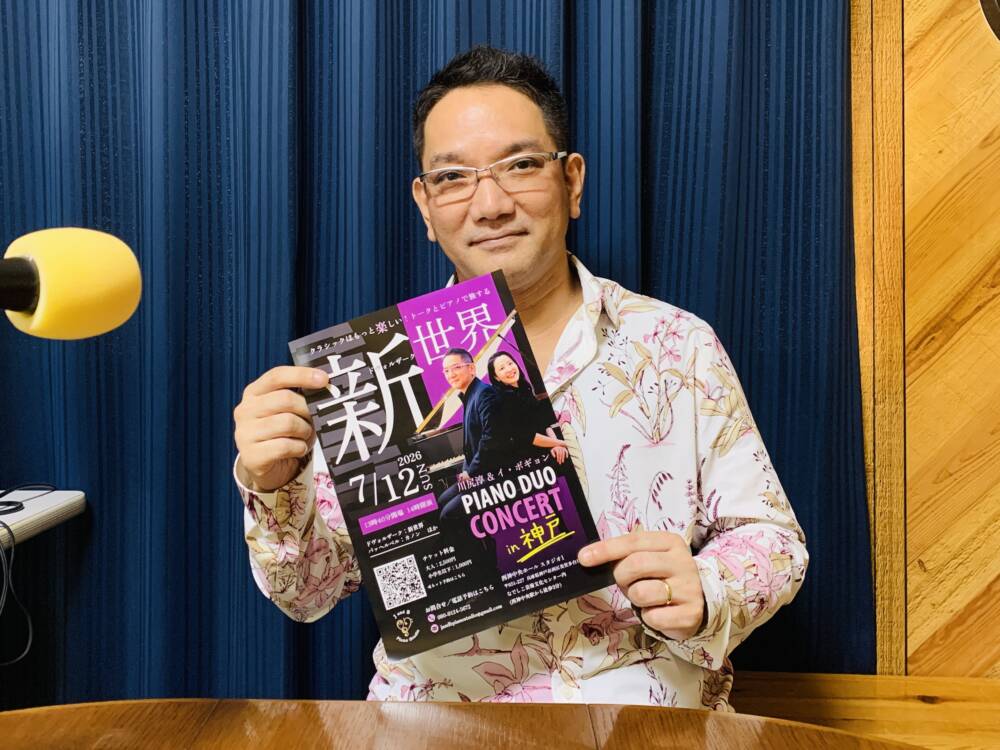 今回のカフェテラスは、ピアニストの川尻淳さんをお迎えして、J&Bピアノスタジオでのレッスンや演奏会の様子、ヴァイオリン、ピアノ、ギター、バンド活動など音楽との出会い、本気でピアノに向き合った大阪音大時代、留学したアメリカのインディアナ大学ジェイコブズ音楽院で出会った方々のエピソードなどをお聞きしました。